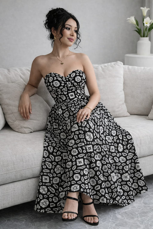 Elegant Black Floral Printed Empire Waist Kurti Top